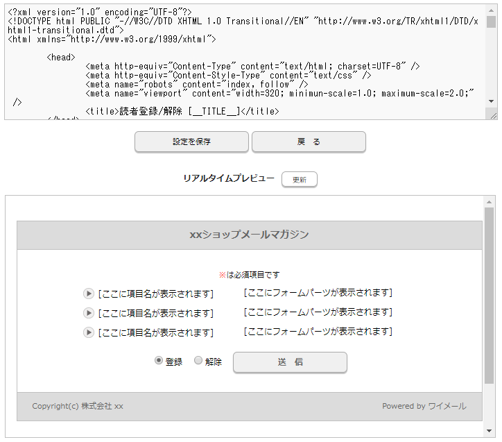 ワイメールでは、読者自身が能動的にメルマガの登録や解除、登録されている読者情報の変更を行えるよう、専用のフォームを出力する機能を用意しています。