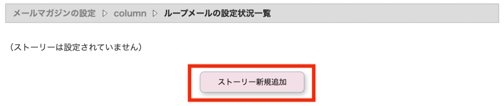 「ループメールの設定状況一覧」画面内の「ストーリー新規追加」ボタンを押下する